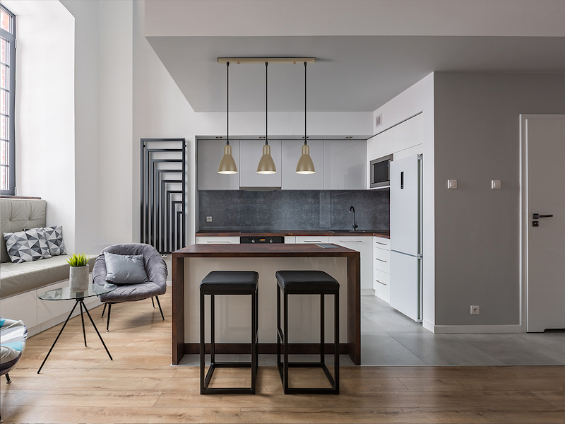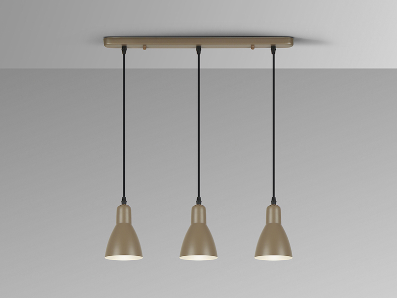 The Afra Schuller 3 light bar lamp is made of metal and finished in satin brown. The fitting is adjustable in height.