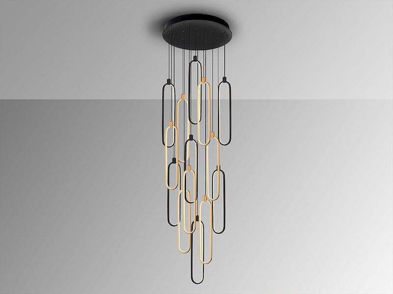 The contemporary Schuller Colette 14 light pendant is made from brushed aluminium with a rose gold and matt black finish. Completed with LED opal silicone diffusers and height adjustable. This pendant would be the focal point of any modern interior.