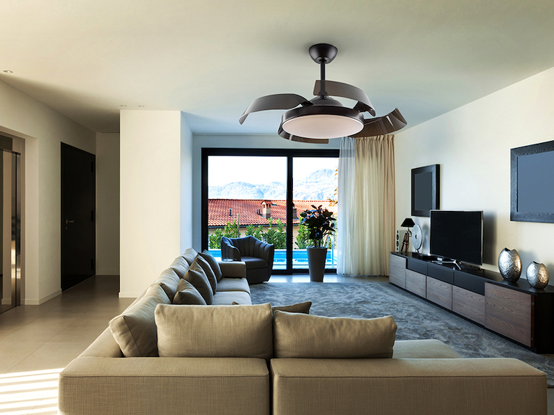 Designed for modern homes and our changing climes, the Enzo Collection with its retractable blades and sophisticated design, combines a sleek ceiling fan with style and convenience. The intermediate-sized fitting, with an extended diameter of 107cm, is perfect for medium-sized rooms. With a 180cm radius of action (measured 140cm below the fan) this fitting will meet both your aesthetic and practical needs.
