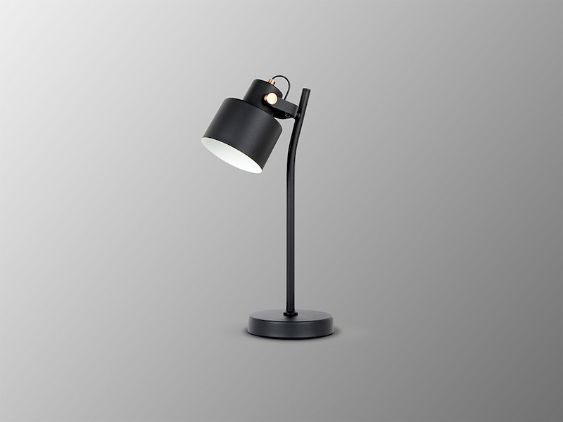 The Erika Schuller table lamp is made of metal and finished in matt black with details in satin copper. The fitting is completed with an adjustable tilt shade.
