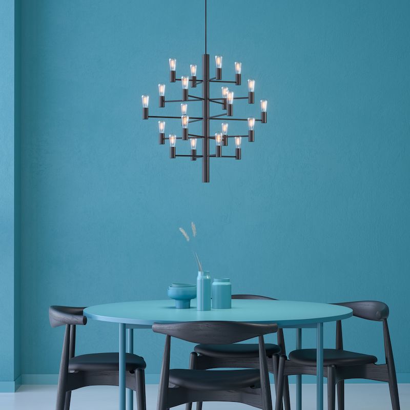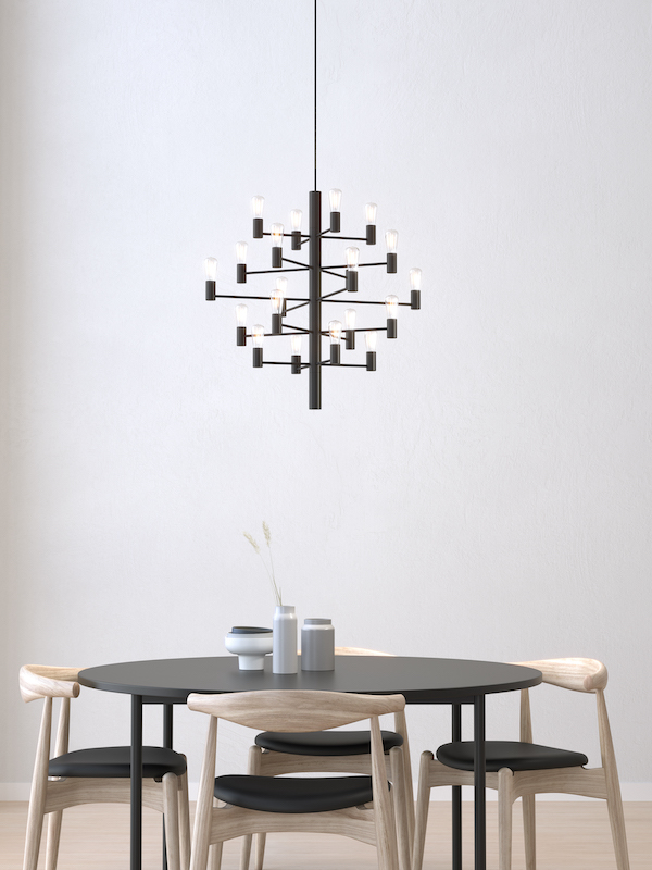 This model comes with 20 arms for deco light bulbs, spreading a warm and atmospheric light across your room. The 20 bulbs provide ample illumination that can also be dimmed to create the perfect mood lighting. The chandelier is made from a combination of high quality materials and expert craftsmanship, meaning that it will last for years to come. The clean, simple design with a round frame, creates an impressive, modern ‘Scandi’ look.