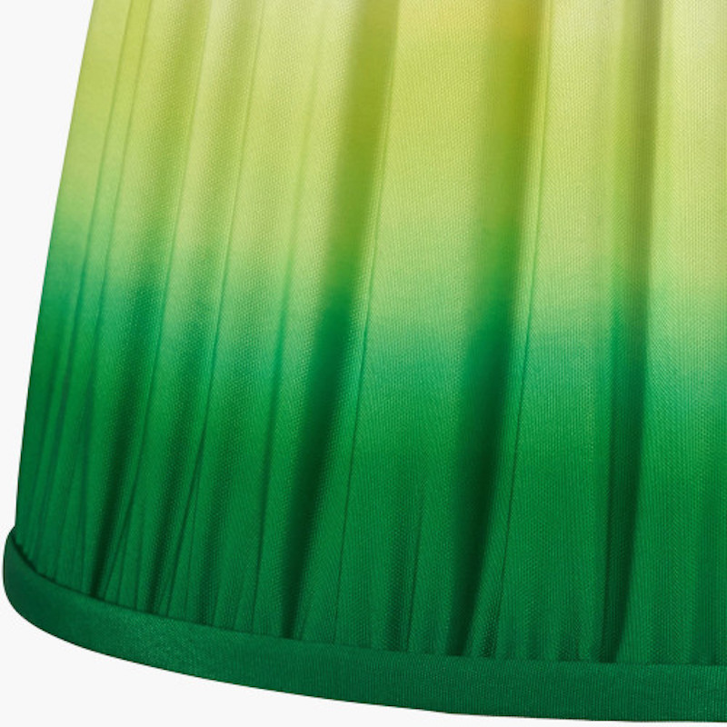 This hand pleated lamp shade features the striking Savoie print from Designers Guild, a signature two toned ombre in shades of graduating green, and looks fantastic on a multitude of lamp bases. The tapered profile creates a contemporary look and a welcome pop of colour.