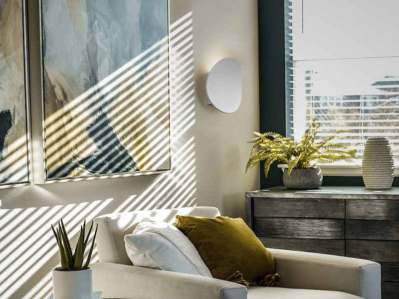 The Schuller Ona wall lamp is made of aluminum, metal and acrylic, in a matt white finish. 7W LED, 290 lumens, 3,000K.