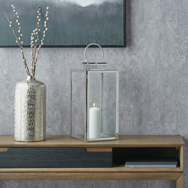 Add an atmospheric glow to your living space with this stunning characterful stainless steel and glass lantern, perfect for cosy nights in and hosting events. Add a statement pillar candle and you are all set.