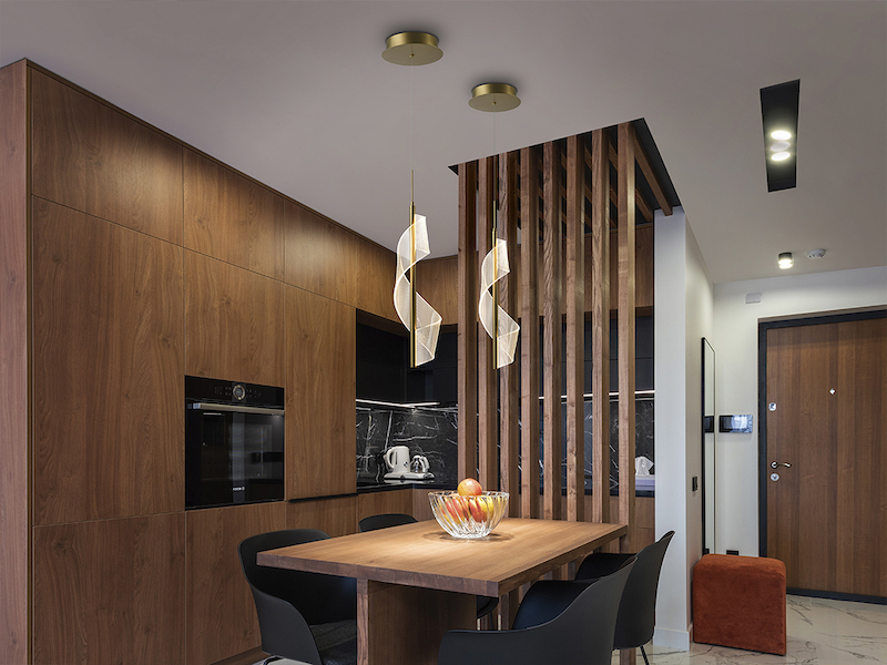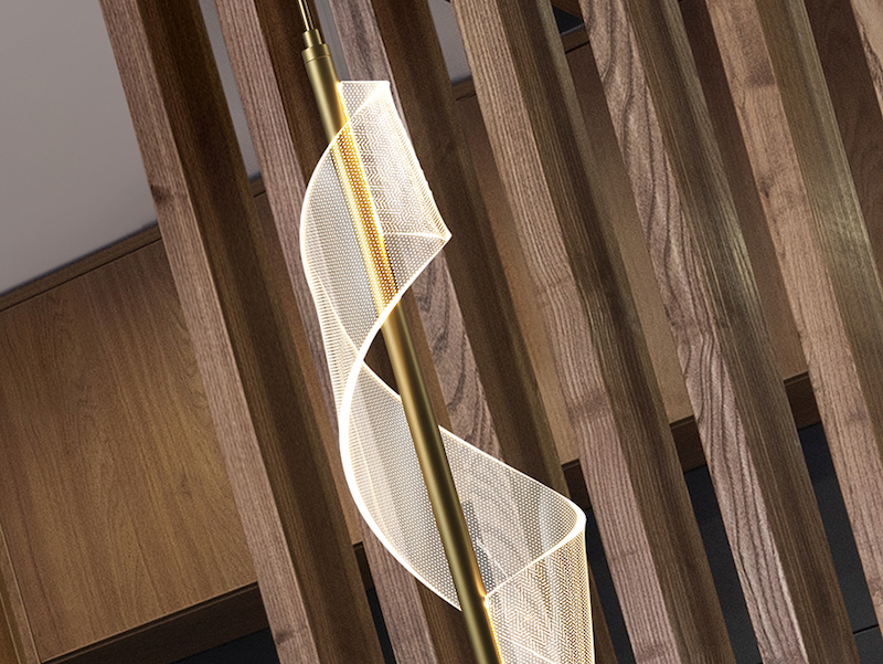 The Schuller Velas 1 light pendant is made of metal and aluminium in a subtle matt, gold finish. The single curved microprinted, methacrylate diffuser completes the striking fitting. Part of the larger Velas Schuller range.