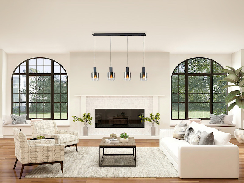 Part of the Venize Collection, the Venize Schuller 4 light lamp is made of metal and finished in satin black. The fitting is completed with blurred smoked glass shades. The pendant is adjustable in height.